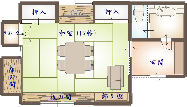 落ち着いた12畳の和室です。