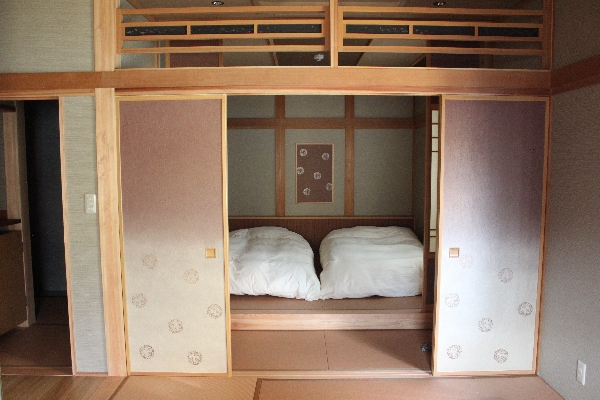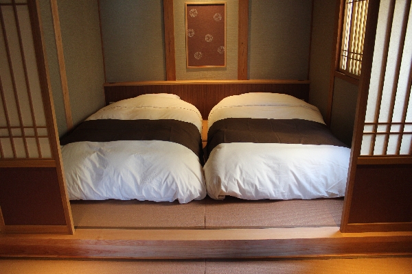 和ベッドが2台の寝室と和室の居間の二間です